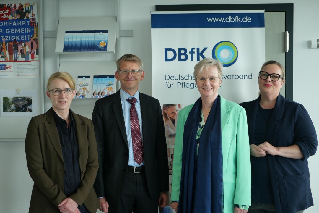 Beim Austausch kam auch ein Blick auf gemeinsame Erfolge nicht zu kurz. Unter anderem viele Anpassungen in der Ausbildung, so die Vergütung des Pflegestudiums oder ein Stipendium für angehende Pflegepädagog:innen, fußen nicht zuletzt auf den vielen konstruktiven Gesprächen mit den Vertreterinnen des Ministeriums.