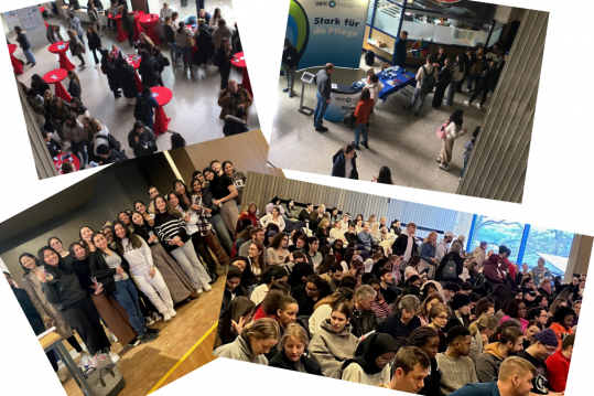 Knapp 500 Auszubildende waren gekommen, um in Vorträgen und Sessions Neues kennenzulernen und aktuelle Themen zu diskutieren. Mitmachen war angesagt beim Thema „Wie stelle ich mir meine Zukunft in der Pflege vor?“ – zwei Ausbildungsklassen hatten dazu Reels vorbereitet.