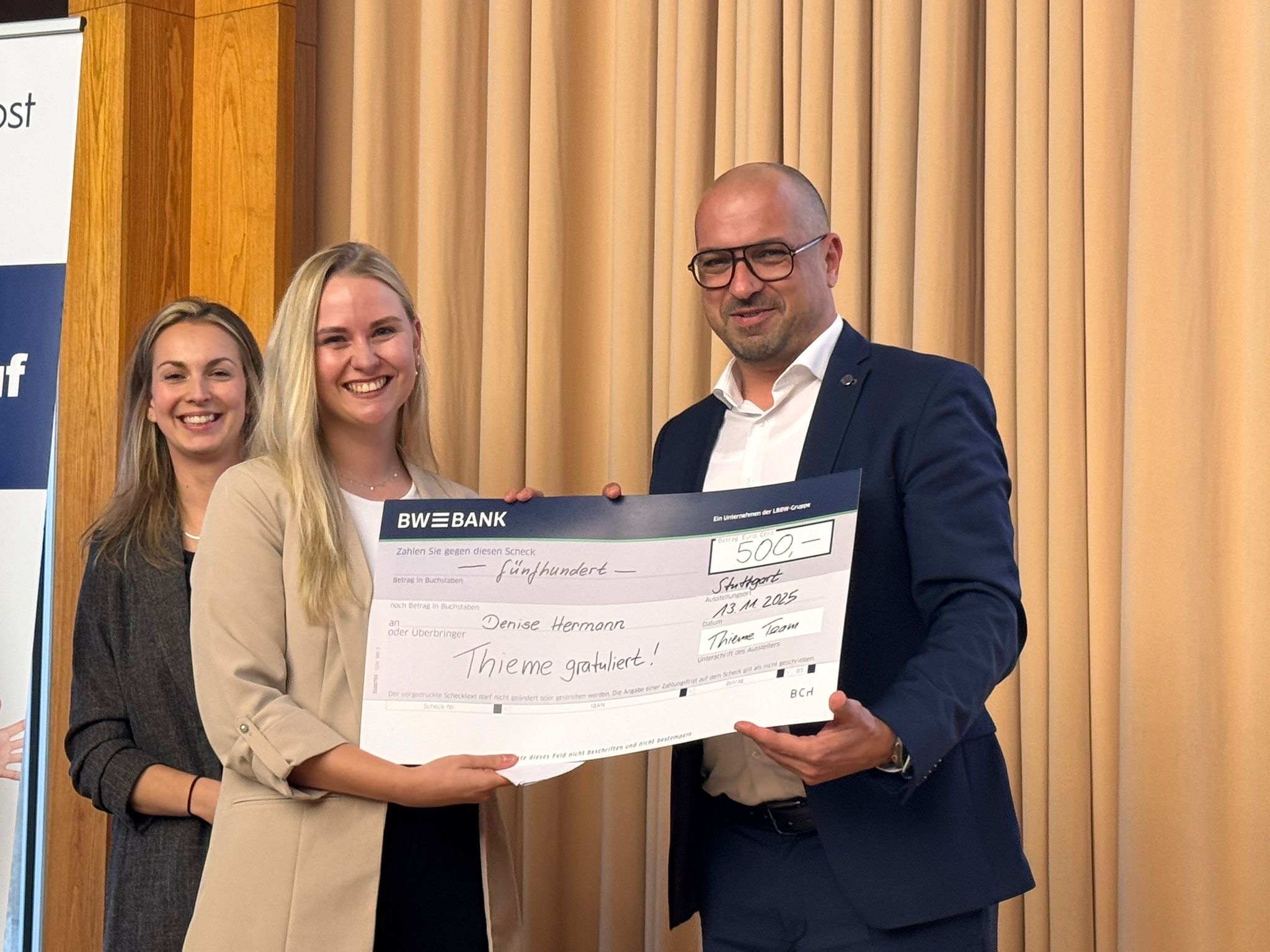 Frida Regner (Jurymitglied – Universitätsklinik Dresden), Preisträgerin Denise Hermann, André Berensmann (Thieme)